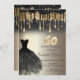 Derramamento de ouro e preto, e vestido preto em fundo de ouro. Perfeito para uma comemoração de um dia de mulher na moda. Personalize com seus próprios detalhes.