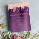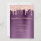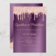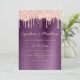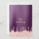 Uma caligrafia manuscrita rosa com ouro moderno, com gradientes roxos escuros e rosa dourados, pinga convites para casamento. Este design brilhante na moda deslumbrante e brilhante é perfeito para a garota inteligente e elegante ou qualquer um. Personalize este design com sua própria mensagem e informações personalizadas. Todas as designs são impressas.