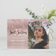Este design de convite moderno apresenta uma textura metálica brilhante, brilhante e elegante, cor-de-rosa e rosa de cobre. Adicione sua foto favorita.