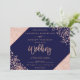 Este convite de casamento azul marinho glitter glitter glitter glitter glitter exalta elegância e sofisticação moderna. A placa apresenta um fundo azul-marinho luxuoso, enfeitado com sotaques brilhando rosa-ouro, criando um impressionante contraste que atrai a atenção. O texto é elegantemente arranjado em uma combinação de fontes clássicas e contemporâneas, com a palavra "Casamento" mostrada de forma destacada em um roteiro de na moda, adicionando um toque de romance ao design. Os detalhes do ouro-rosa e do confete dão ao convite uma sensação glamourosa, perfeita para uma sofisticada e na moda.