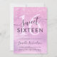 Pintinho moderno Sweet 16 convite de aniversário com fundo brilhante roxo e letra elegante de caligrafia.