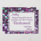 Você está planejando o dia mais especial de sua vida e este convite para olhar de brilho roxo fará suas potenciais damas de honra se sentirem muito especiais também!! Este convite é uma maneira única e divertida de pedir aos seus amigos para celebrarem com você. O cartão diz " Meu dia especial seria ainda mais completo se você dissesse "SIM" a ser minha dama de honra. Para obter mais placas com a aparência de brilho (mas sem a bagunça), visite GlitterInvitations.com ou Zazzle.com/GlitterInvitations (Observe que esta placa é um impressão gráfico e não contém brilho.)