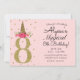 Convites Glitter Unicórnio Dourado Rosa 8 Aniversário de 8