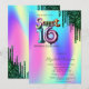 Um moderno, chic e glamouroso Sweet 16 com gotas verdes de brilho, num fundo holográfico.