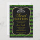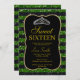 Negra e verde brilha elegante impressão simples e simples, convites de festas de celebrações Doce 16. Design muito clássico e sofisticado para a senhora de aniversário clássica. O texto pode ser alterado para qualquer coisa para ajustado do seu evento. Fontes, cor da fonte e texto são completamente personalizáveis! A forma e o tipo do papel podem ser personalizados para ajustado do seu orçamento e sabor!