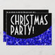 Convite com um design moderno com estrelas espalhadas por uma forma estilizada de "aparência sequencial" curvada em tons de azul sobre fundo negro e "Festa de Natal!" em branco. Pode ser usado como um fundo para o seu próprio texto, imagens e ideias. O texto pode ser facilmente alterado usando o modelo fornecido ou clique no botão 'Personalizar o texto' para fazer outras alterações. Observe que esta é uma imagem de arte digital impressa, ela não brilha ou contém cinzas ou sequências reais.