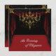 Carpete vermelho, vermelho luxuoso e cortinas pretas de ouro, convite para bailes de formatura escolares mais candelabro.