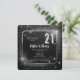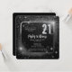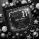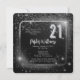 Dramatic black and faux silver tone sparkles and stars glitzy "21" gender neutral 21st birthday party design.