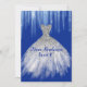 O glamouroso inverno teve o convite de aniversário Sweet 16 com gráficos de um vestido brilhante de brilho prateado, sobre um fundo azul real, com gelo cintilante pendurado. Personalize o texto para o dia especial de sua filha.