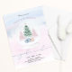 Um convite de festas Revelador de Sexo Bebê de inverno. A design de Natal apresenta um globo de neve com um bebê recém-nascido e árvores de Natal em um fundo azul e rosa com cor de água.
