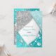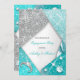 Se você está procurando por um convite de casamento maravilhoso e luxuoso, não olhe mais que esse design chic e clássico. Este produto apresenta um belo fundo turquesa com sotaques prateados e joias espumantes que criam um aspecto glamouroso e sofisticado. A design é perfeita para comemorar seu noivado, casamento, aniversário ou qualquer outra ocasião especial que mereça alguma elegância. Você pode personalizá-lo com suas próprias informações, como nomes, datas, locais e detalhes de RSVP. O produto é feito de materiais de alta qualidade e tem um estilo moderno e elegante que impressionará seus hóspedes e os fará se sentirem especiais. Peça o seu hoje e prepare-se para brilhar com este belo convite de casamento.