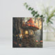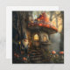 Design de um gnomo e sua casa de cogumelos em uma floresta mágica.