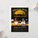 Convite de festas de fantasia de Halloween com dois gnomos deliciosos sentados entre abóboras bonitinhas.