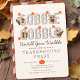 Gobble até você balançar! Nosso convite de Ação de Graças apresenta "Gobble Gobble" feito de latidos de pássaros e folhas de outono, com perus adoráveis saindo. Perfeito para um banquete confortável e festivo! O reverso apresenta um padrão de folhas de maple em um fundo laranja. Personalize para atender às suas necessidades.