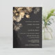 This elegant wedding invitation features gold flowers on a black background. Dark aesthetic wedding invitation with your photo and a scannable qr code for your wedding website on the backside.