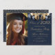 Elegant and Sparkly Gold Blue Balloons Graduation Party photo Invitation for Class of 20XX. Celebrate in Style!