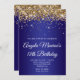 Convites Gold Glitter Deep Blue Gradient 18th Birthday
