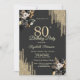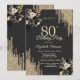 Convites Gold Glitter Drips Black Roses Dark 80th Birthday