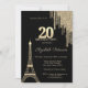 Convites Gold Glitter Drips, Eiffel Tower 20th Birthday