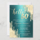 Convites Gold Glitter Drips Green Metallic 50th Birthday