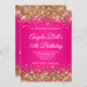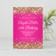 Convites Gold Glitter Hot Pink Ombre Monogram 18th Birthday