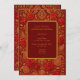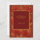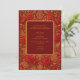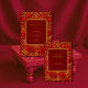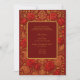 This oriental luxurious wedding invitation features a vibrant maroon red backdrop adorned with intricate gold Paisley and mango motifs and blooming rose designs, perfectly symbolizing love, prosperity, and elegance. The ornate patterns and warm tones create a festive and romantic atmosphere for an indian Hindu wedding.