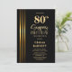 Convites Gold Striped Black 80th Surprise Birthday Party