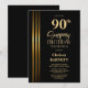Convites Gold Striped Black 90th Surprise Birthday Party