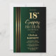 Convites Gold Striped Black Green 18th Surprise Birthday