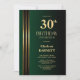 Convites Gold Striped Black Green 30th Birthday Party