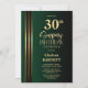 Convites Gold Striped Black Green 30th Surprise Birthday