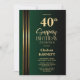 Convites Gold Striped Black Green 40th Surprise Birthday