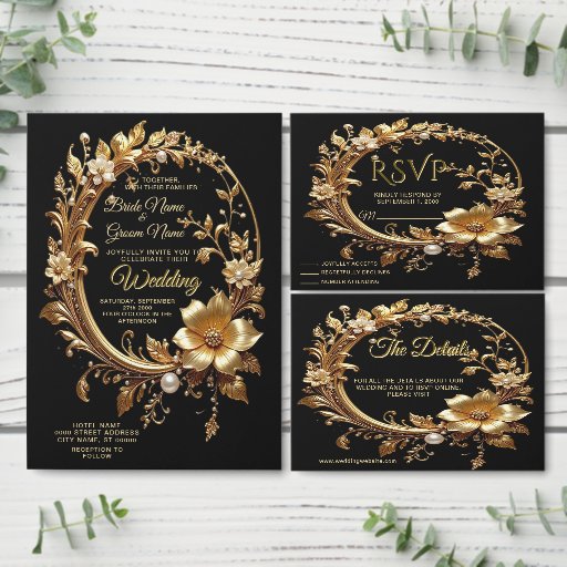 Beautiful Golden Floral Ornate Frame Bridal Shower Invitation