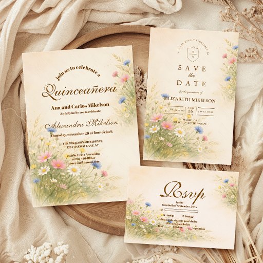 Convites Golden Meadow Wildflower Quinceañera