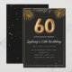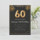 Adorable 60th birthday party invitation in a black and gold balloons design with golden tropical palm leaves. Customize with your party details and mail out to family and friends inviting them to celebrate the 60th birthday with style!