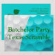Você pode personalizar todo o texto neste convite de despedida de solteiro. Você pode alterar o texto e o número na frente e usar isso para outros tipos de convites de golfe. O design apresenta um golfista verde segurando um taco e duas bolas de golfe coloridas com depressões.