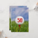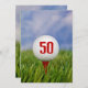 Bola de golfe branca sobre a teia vermelha na grama verde para a 50ª festa Todo texto é editável.