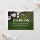 Golf Salve a data Golf Tournament em verde Anúncio Postcard com chapéu de calçado de golfe e putter