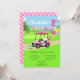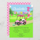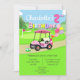 Celebrar o primeiro aniversário de uma menina especial com este encantador convite temático de golfe! Apresentando um adorável carrinho de golfe cor-de-rosa estacionado ao lado de um design verde, carregado com detalhes divertidos, um bolo de aniversário festivo, e um monte de balões brilhantes de hélio, incluindo um balão grande número 2. Perfeito para uma família que ama o golfe ou para um tema único de segundo aniversário, este convite dá o tom para um dia cheio de diversão no verde.