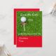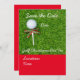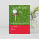 Golfe Salve a data para o Natal com bola de golfe Convite com teia e fita de Natal sobre grama verde