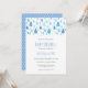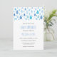 Chic gotas de chuva azuis caem em direção aos seus detalhes personalizados neste convite de casais para baby sprinkle ou chá de bebê. O verso apresenta uma chuva adicional de gotas de chuva, adicionando um toque extra ao seu evento especial. Criado por Thisisnotme©