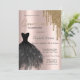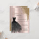 Vestidos pretos elegantes e brilho dourado pingam em um fundo rosa dourado.