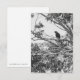 This postcard is a photographic reprint of my husband, Steve's, original nature photograph. It is such a stunning and striking image. The pitch-black raven is juxtaposed so contrastingly against the pure, palest-gray sky. The lighting hitting the tree branches and foliage gives such an eerie effect. Some branches look like normal branches, others look as if they may be covered in snow. Yet others, especially the smaller, spindly branches, look almost as if they could be cobwebs. The shadows in the foliage give the image such rich depth and range of grays, from light, silvery shades, through the charcoal range, and into the almost-black range. Superb.