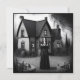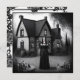 Convites de Halloween personalizados. Mulher gótica assustadora com vestido preto. Conteúdo genérico da arte AI