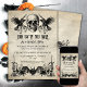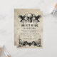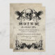 O convite da festa do Dia das Bruxas Gótico no estilo da vintagem com crânio, ravens, rosas pretos, morcegos e velas para lhe dar uma atmosfera assustadora. Textura de papel antiga e texto antigo.