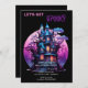 Ponha o tom para uma noite emocionante com este estranho e mágico convite da festa do Dia das Bruxas. Em fundo preto, uma casa azul sombria assombrada se abaixa sob um céu luar roxo. A frase ousada "Vamos Ficar Loucos", escrita em uma fonte gótica elaborada, melhora a atmosfera escura e misteriosa. Ideal para enviar calafrios pela espinha dos seus hóspedes, este convite é perfeito para convidar amigos para uma comemoração cheia de fantasias, que não esquecerão.