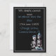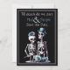 Revele sua história de amor de uma forma encantadora, mas muito charmosa, com nosso Esqueleto Negro Personalizável salvando a data. Apresentando uma noiva branca e um esqueleto de noivo adornada com chapéu azul teal e flores, este anúncio é uma narrativa lúdica para o amor eterno além das limitações da vida. O fundo preto profundo define o palco para um toque de mistério, enquanto os sotaques azuis lacrimogêneos infundem um pop de cor. Totalmente personalizável, esta data salva permite que você infunda seu próprio toque pessoal, fazer-o uma maneira única e memorável de compartilhar suas notícias felizes para sempre.