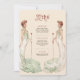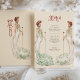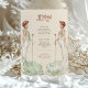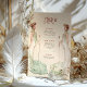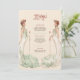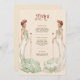 Adicione um toque de elegância à sua recepção de casamento com este cartão de menu inspirado no Art Nouveau. A design da frente apresenta uma figura graciosa em um vestido de marfim que flui adornada com intrincados padrões florais verdes, segurando uma rosa vermelha de solteiro. A tipografia de vintage e o fundo bege mudado reforçam o sentimento romântico e sofisticado. A parte traseira mostra um design espelhado com o menu exibido elegantemente em uma fonte serif. Perfeito para casamentos com jardim, vintage ou Art Nouveau, este cartão de menu é um guardião de eterno para o seu dia especial.