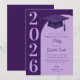 A modern graduation ceremony invitation card with purple colors. The text details and image can be personalized.
