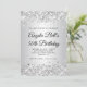 Um elegante convite de 50 anos para ela. Você pode personalizar o texto para outra celebração de aniversário de marco. O recurso de arte digital falso brilho prateado cintilante com faíscas extras contra uma cinza de luz e um gráfico digital gradiente branco. Todos os elementos brilhantes e brilhantes neste design de menina moderno são gráficos digitais que impressão gostam de uma foto.